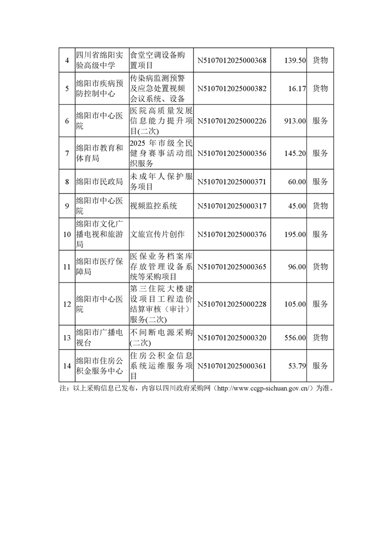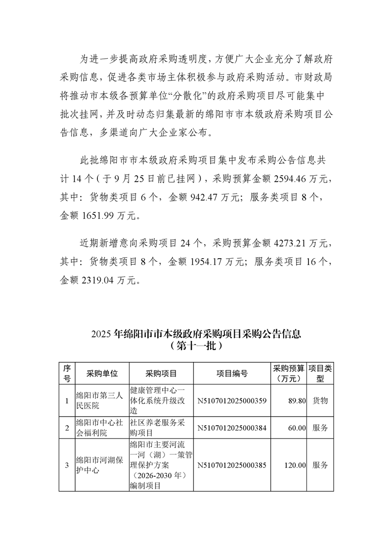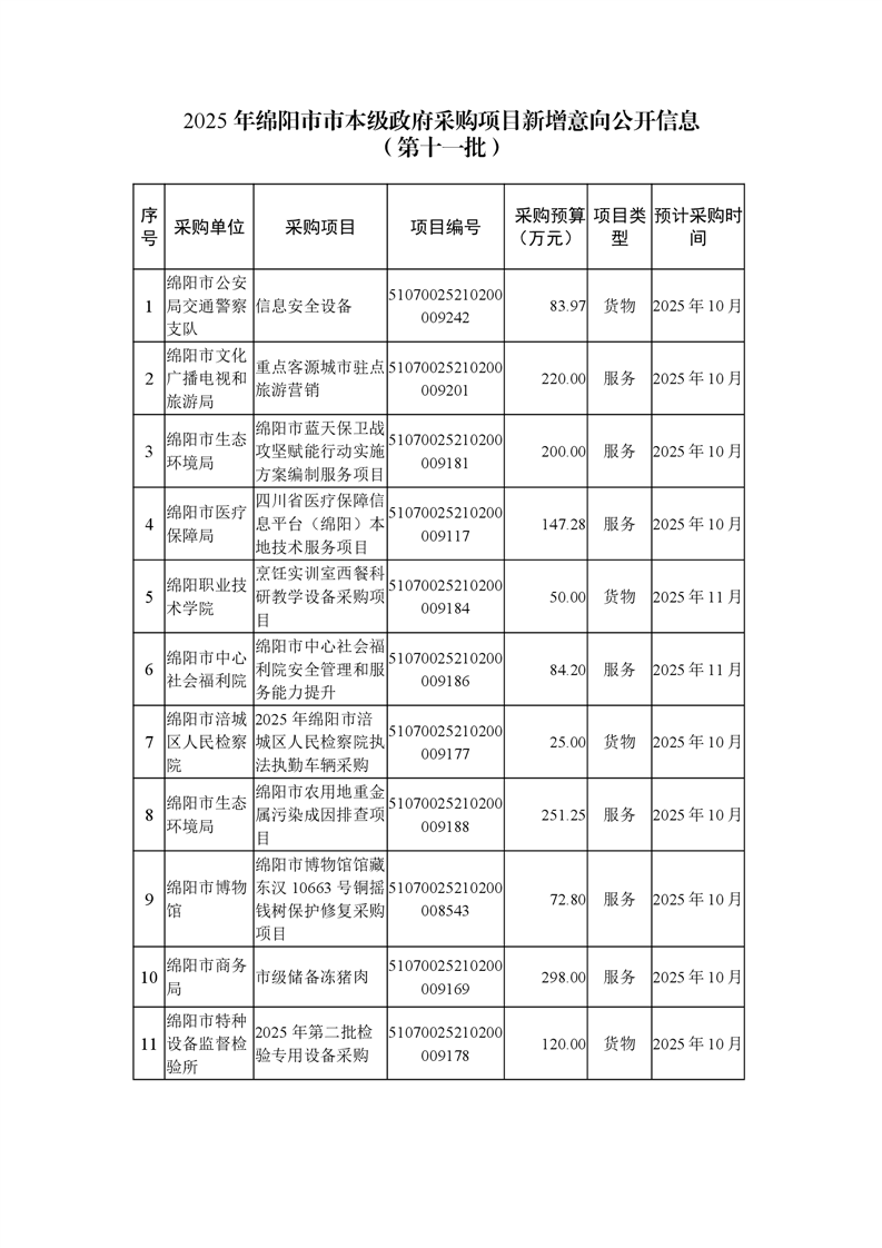 38個政府采購項目的“機會清單”出爐?。?025年第十一批)綿陽市市本級政府采購項目信息動態(tài)(2025年第十一波)