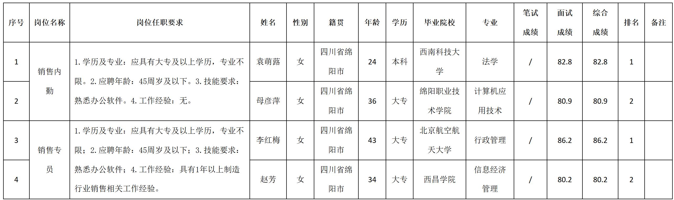 根據(jù)四川九州光電子技術(shù)有限公司發(fā)布的招聘公告及招聘相關(guān)規(guī)定,現(xiàn)將測試成績予以公示。