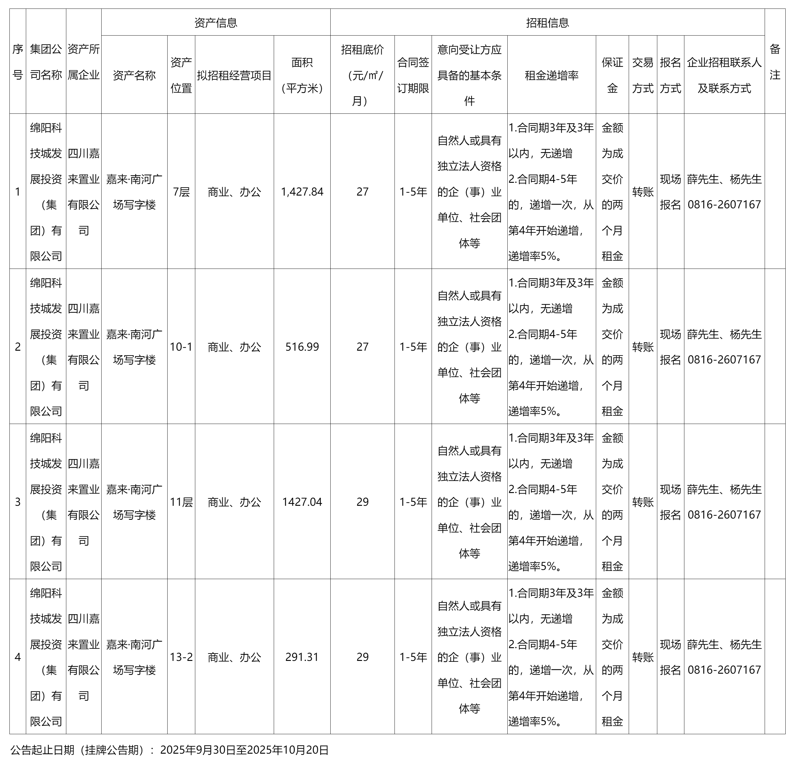四川嘉來置業(yè)有限公司資產(chǎn)出租公告