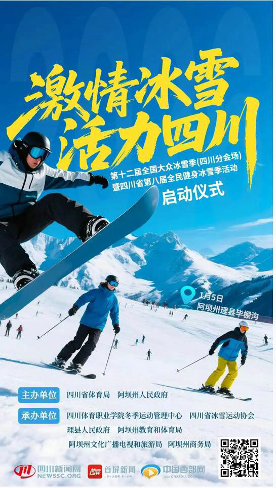 1月5日11:00,以“激情冰雪 活力四川”為主題的第十二屆全國大眾冰雪季(四川分會(huì)場)暨四川省第八屆全民健身冰雪季啟動(dòng)儀式,將在阿壩州理縣畢棚溝滑雪場正式拉開帷幕。關(guān)注四川新聞網(wǎng)網(wǎng)站、微博、微信視頻號(hào)以及首屏新聞客戶端直播,和我們一起燃動(dòng)冰雪!