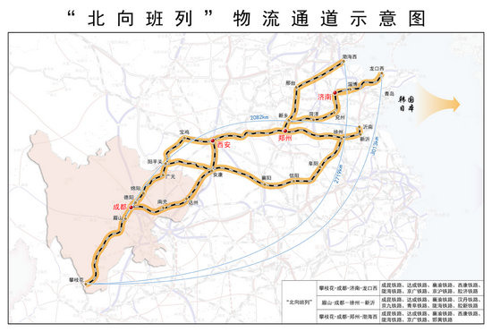 “北向班列”物流通道示意圖