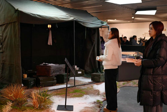 1月7日,觀眾在展覽現(xiàn)場參觀中國首個核武器研制基地——青海省海北州金銀灘“三頂帳篷起家”的復(fù)原場景。新華社記者劉穎 攝