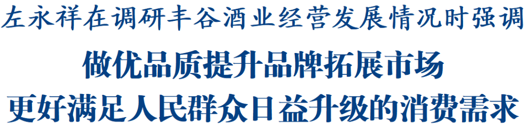 左永祥強調(diào),豐谷酒業(yè)要堅持創(chuàng)新驅(qū)動,在釀造工藝優(yōu)化、產(chǎn)品風味提升上持續(xù)精進,加強全鏈條質(zhì)量管控,圍繞市場需求開發(fā)多元化產(chǎn)品,在守正與創(chuàng)新中搶占發(fā)展先機。要深度挖掘白酒歷史文化底蘊,講好品牌故事,完善企業(yè)文化表達體系,加快推進酒文旅深度融合發(fā)展,培育新的發(fā)展增長點。要著眼長遠和全局,利用好資本市場,科學有序布局新項目,延伸產(chǎn)業(yè)鏈條,創(chuàng)新營銷方式,不斷搶占更廣闊的市場空間。要高度重視安全生產(chǎn),緊盯重點部位、重點環(huán)節(jié),全面開展風險隱患排查整治,進一步筑牢企業(yè)高質(zhì)量發(fā)展的安全底線。