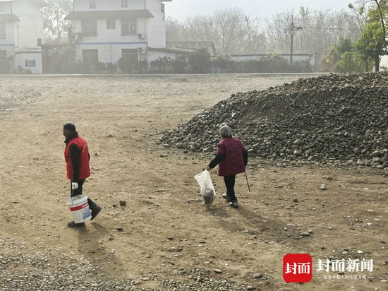 兩河口村中,村民正在自發(fā)性撿垃圾