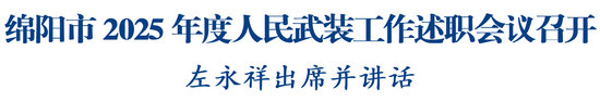 綿陽(yáng)新聞網(wǎng)訊 1月13日,綿陽(yáng)市2025年度人民武裝工作述職會(huì)議召開,省委常委、市委書記、綿陽(yáng)軍分區(qū)黨委第一書記左永祥出席會(huì)議并講話。他強(qiáng)調(diào),要深入學(xué)習(xí)貫徹習(xí)近平強(qiáng)軍思想和黨的二十屆四中全會(huì)精神,全面落實(shí)黨中央和省委決策部署,堅(jiān)決扛起黨管武裝政治責(zé)任,持續(xù)深化政治整訓(xùn),聚力練兵備戰(zhàn),強(qiáng)化作風(fēng)建設(shè),奮力推動(dòng)國(guó)防動(dòng)員和后備力量建設(shè)高質(zhì)量發(fā)展,為實(shí)現(xiàn)建軍一百年奮斗目標(biāo)貢獻(xiàn)更大力量。