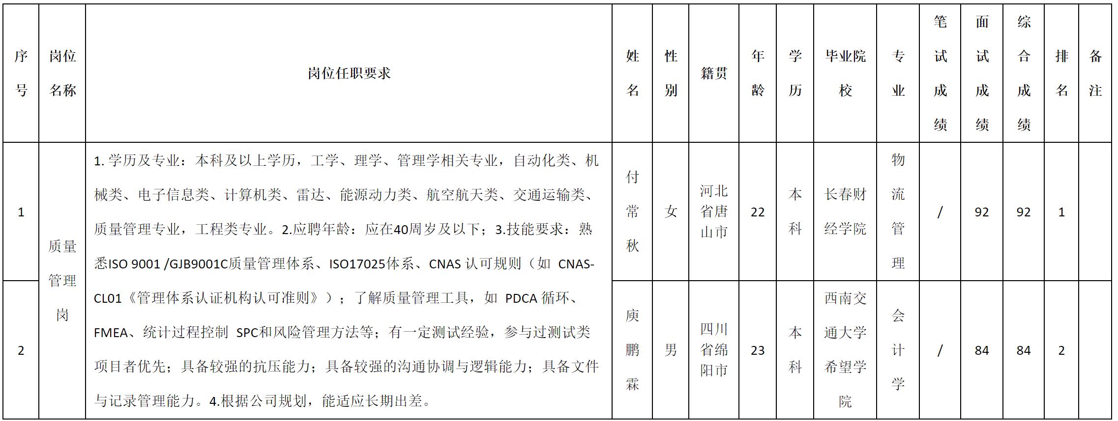 根據(jù)綿陽科技城低空裝備檢驗檢測認證有限責任公司發(fā)布的招聘公告及招聘相關(guān)規(guī)定,現(xiàn)將測試成績予以公示。