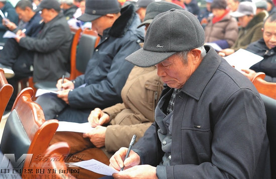 新橋鎮(zhèn)選民填寫(xiě)人大代表履職測(cè)評(píng)表。