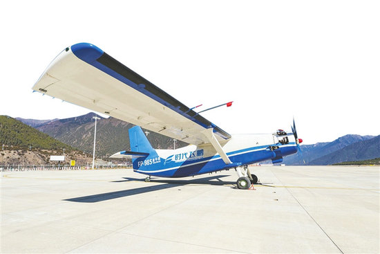 執(zhí)行川藏高原跨區(qū)域無(wú)人機(jī)物流航線首飛的FP-985“金牛座”大型固定翼無(wú)人機(jī)。新華社發(fā)
