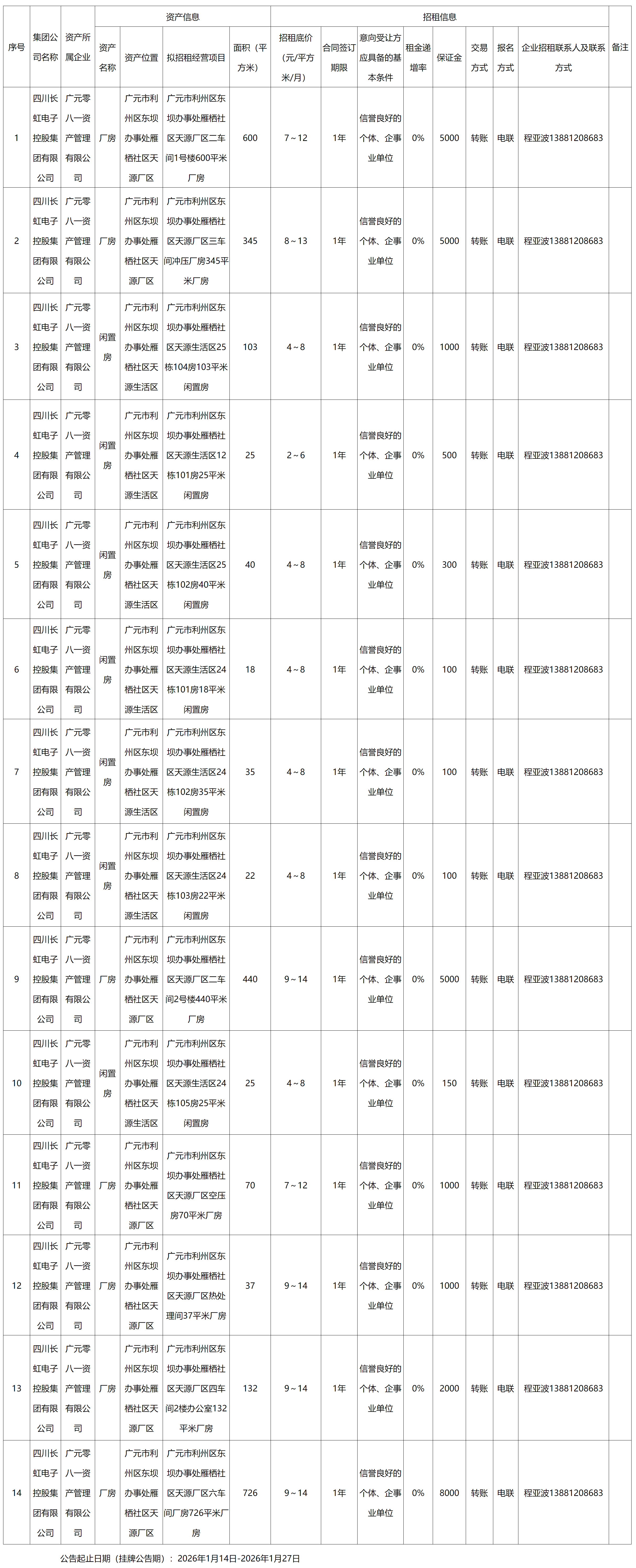 廣元零八一資產(chǎn)管理有限公司資產(chǎn)出租公告