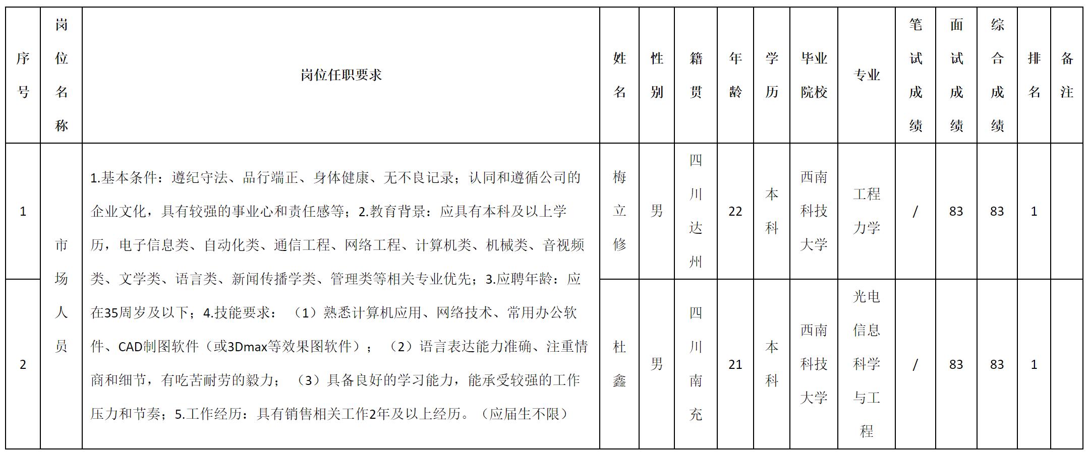 根據(jù)四川湖山電器股份有限公司發(fā)布的招聘公告及招聘相關(guān)規(guī)定,現(xiàn)將測試成績予以公示。