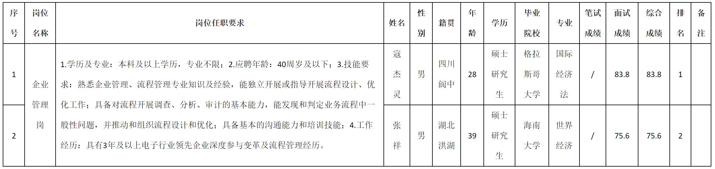 根據(jù)四川九洲投資控股集團(tuán)有限公司發(fā)布的招聘公告及招聘相關(guān)規(guī)定,現(xiàn)將測試成績予以公示。