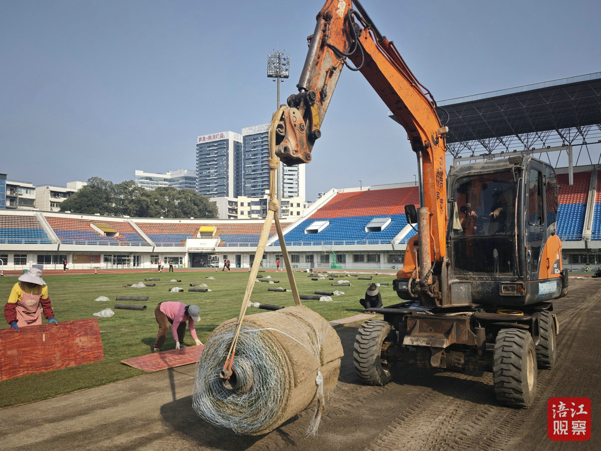 記者在施工現(xiàn)場(chǎng)看到,從草皮鋪設(shè)到看臺(tái)地板刷漆,再到主客隊(duì)休息室的全面翻新,各項(xiàng)改造工作有條不紊。在球場(chǎng)草皮鋪設(shè)現(xiàn)場(chǎng),機(jī)械與人工緊密配合,協(xié)同作業(yè)。施工人員分工明確、配合默契,有的負(fù)責(zé)搬運(yùn),有的鋪設(shè)。為確保每一片草皮都能與地面緊密貼合,工人們?nèi)褙炞?,不放過任何一個(gè)細(xì)節(jié)。
