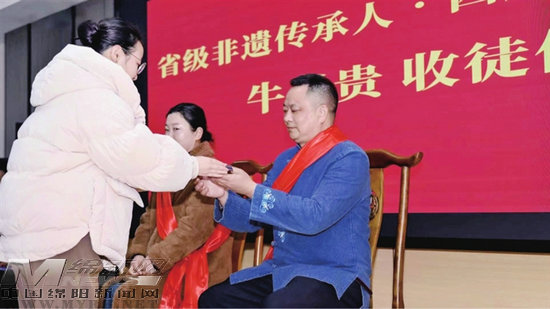 隨后,年會(huì)的重頭戲——非遺拜師儀式莊嚴(yán)登場。老一輩傳承人傾囊相授,年輕弟子躬身敬茶。這一遞一接之間,托付的不僅是手藝,更是綿延不絕的文化薪火。