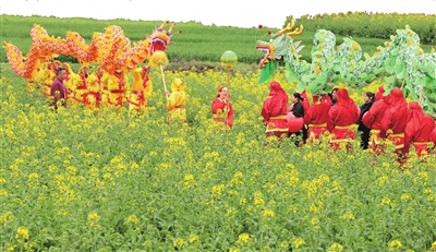 油菜花節(jié)舞金龍?! ●憬?攝