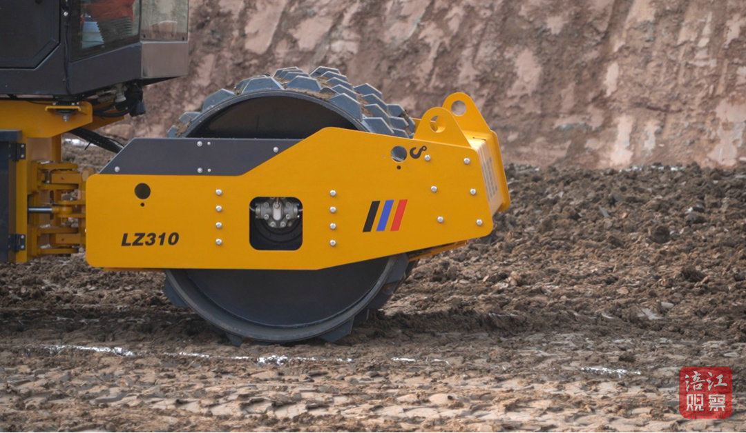 在大壩心墻位置,一輛重型羊角碾壓機(jī)正有條不紊地來回碾壓。鋼制碾輪上的凸起齒痕如鋸齒般咬合黏土層,留下一道道整齊的紋路。