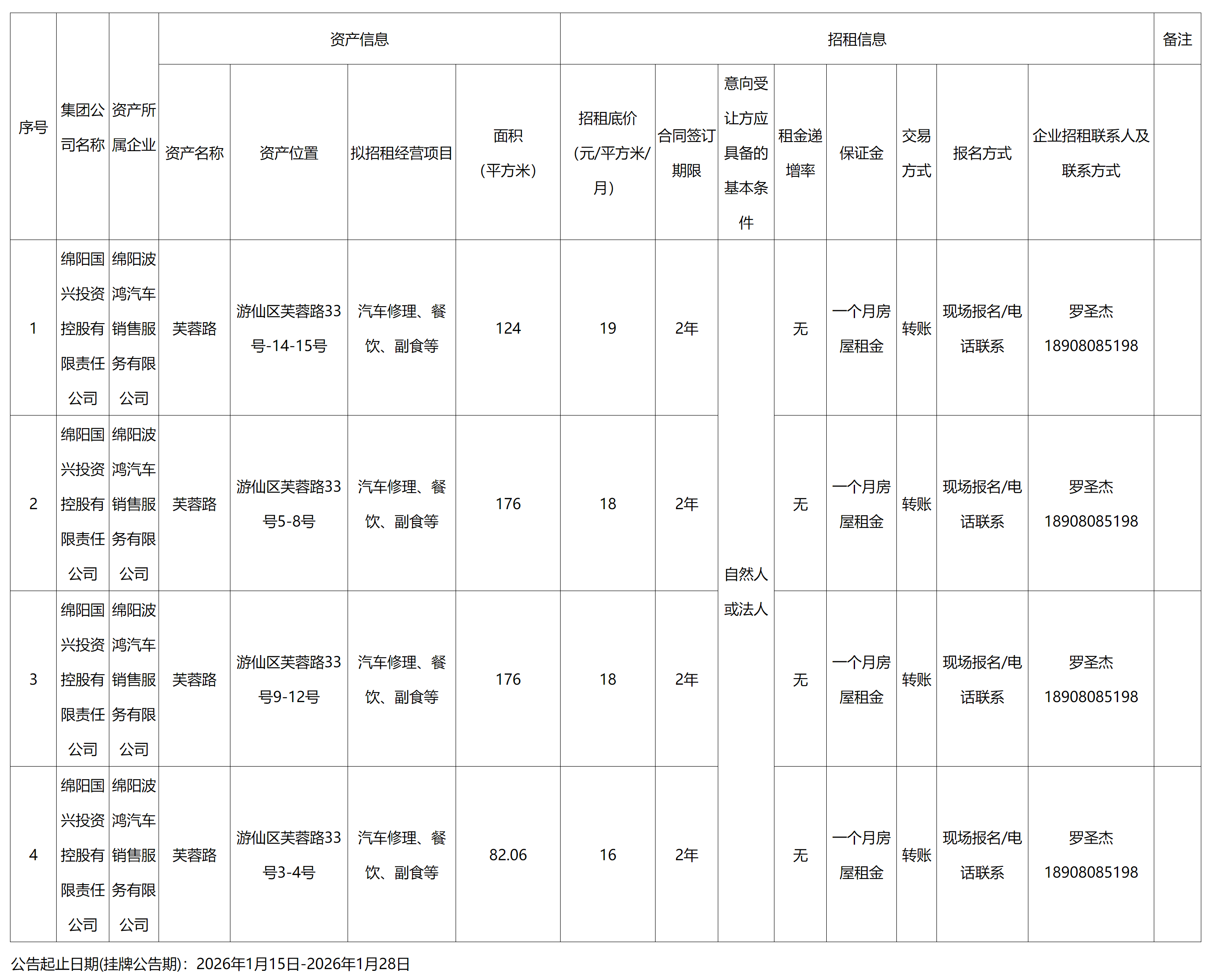 綿陽國興投資控股有限責(zé)任公司資產(chǎn)出租公告