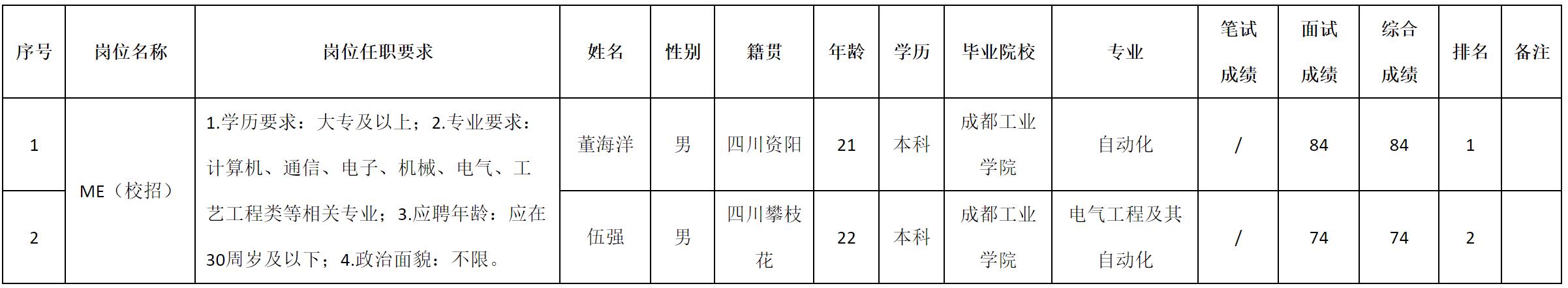根據(jù)四川九州電子科技股份有限公司發(fā)布的招聘公告及招聘相關(guān)規(guī)定,現(xiàn)將測(cè)試成績(jī)予以公示。