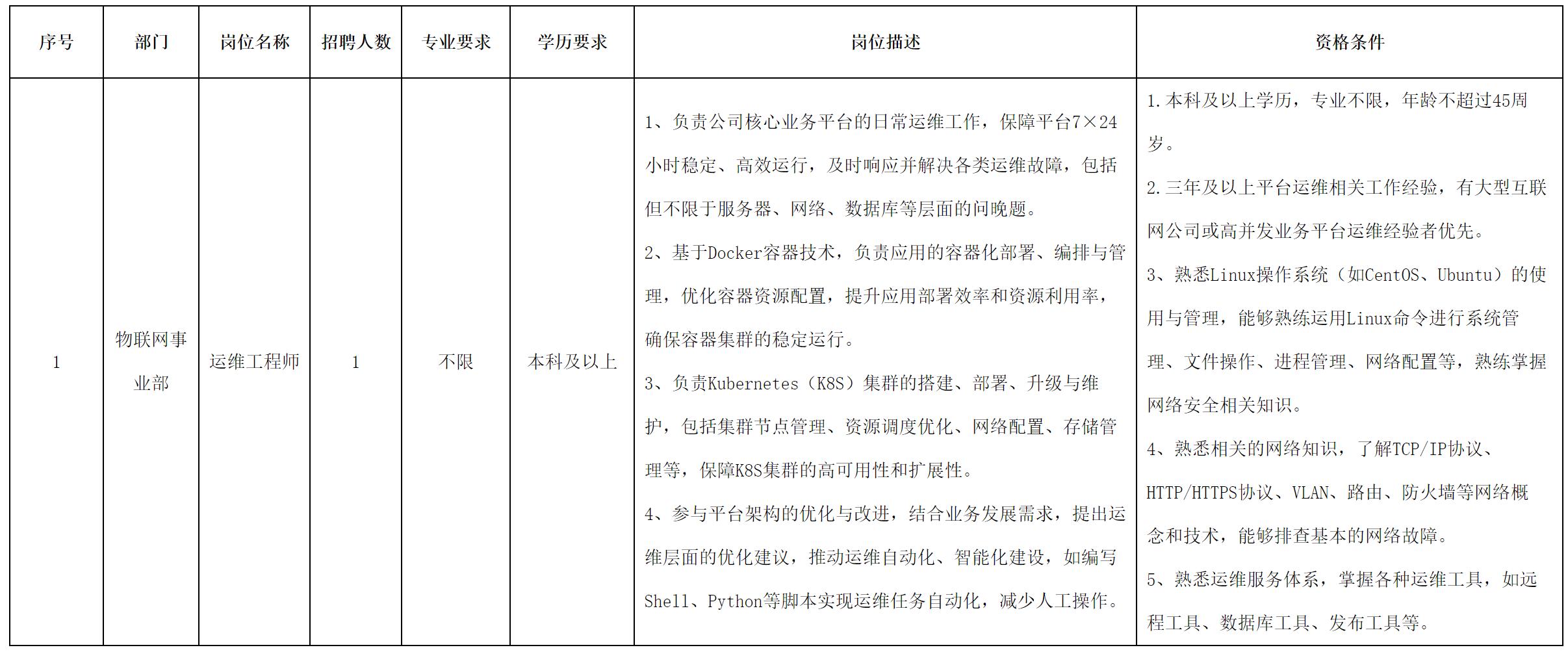 現(xiàn)因公司經(jīng)營發(fā)展需要,現(xiàn)面向長虹控股集團(tuán)內(nèi)、外部誠聘運(yùn)維工程師崗位人員,具體崗位招聘信息公告如下: