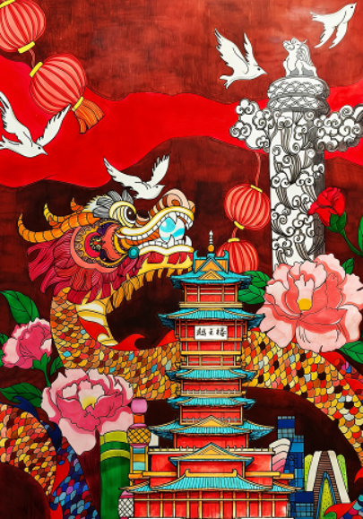 卓越繪畫獎: 《榮光》  張惠媛(9.23)指導(dǎo)教師:文順明;《中國年》   唐啟文(9.11) 指導(dǎo)教師:吳斌 ;