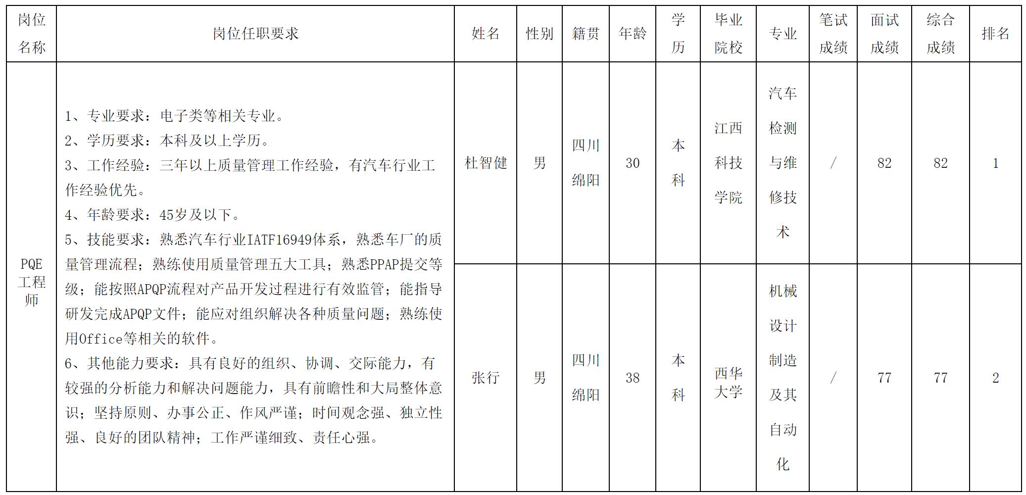 根據(jù)四川愛創(chuàng)科技有限公司發(fā)布的招聘公告及招聘相關(guān)規(guī)定,經(jīng)面試等程序,現(xiàn)將面試成績予以公示。