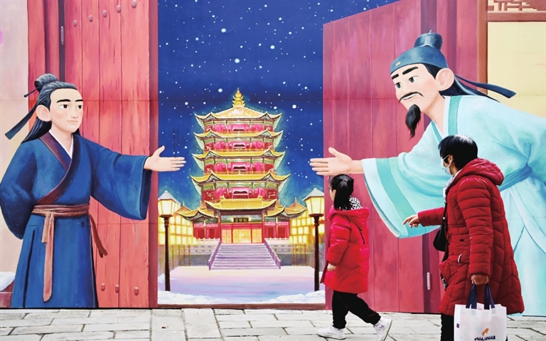 以李白、越王樓等為主題元素的彩畫(huà)扮靚了城市。