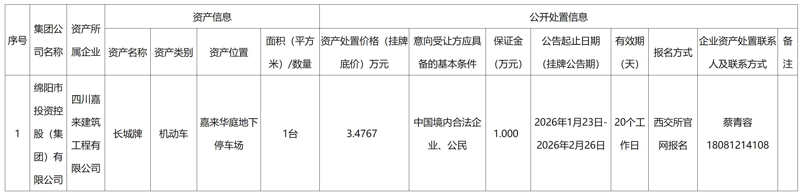 四川嘉來建筑工程有限公司資產(chǎn)處置公告
