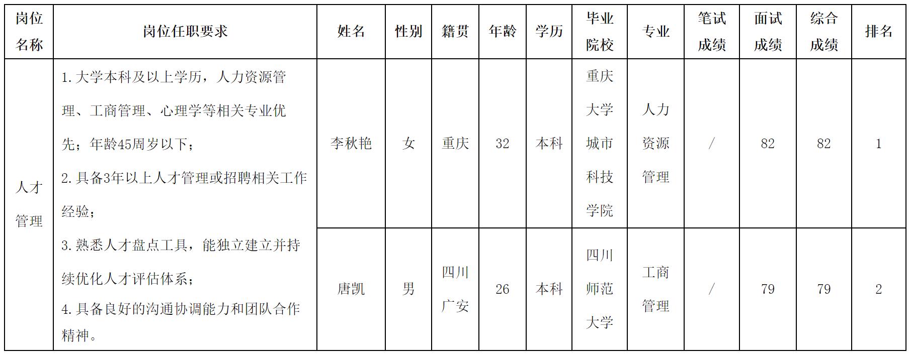 根據(jù)四川華豐科技股份有限公司發(fā)布的招聘公告及招聘相關(guān)規(guī)定,經(jīng)面試等程序,現(xiàn)將測試成績予以公示。