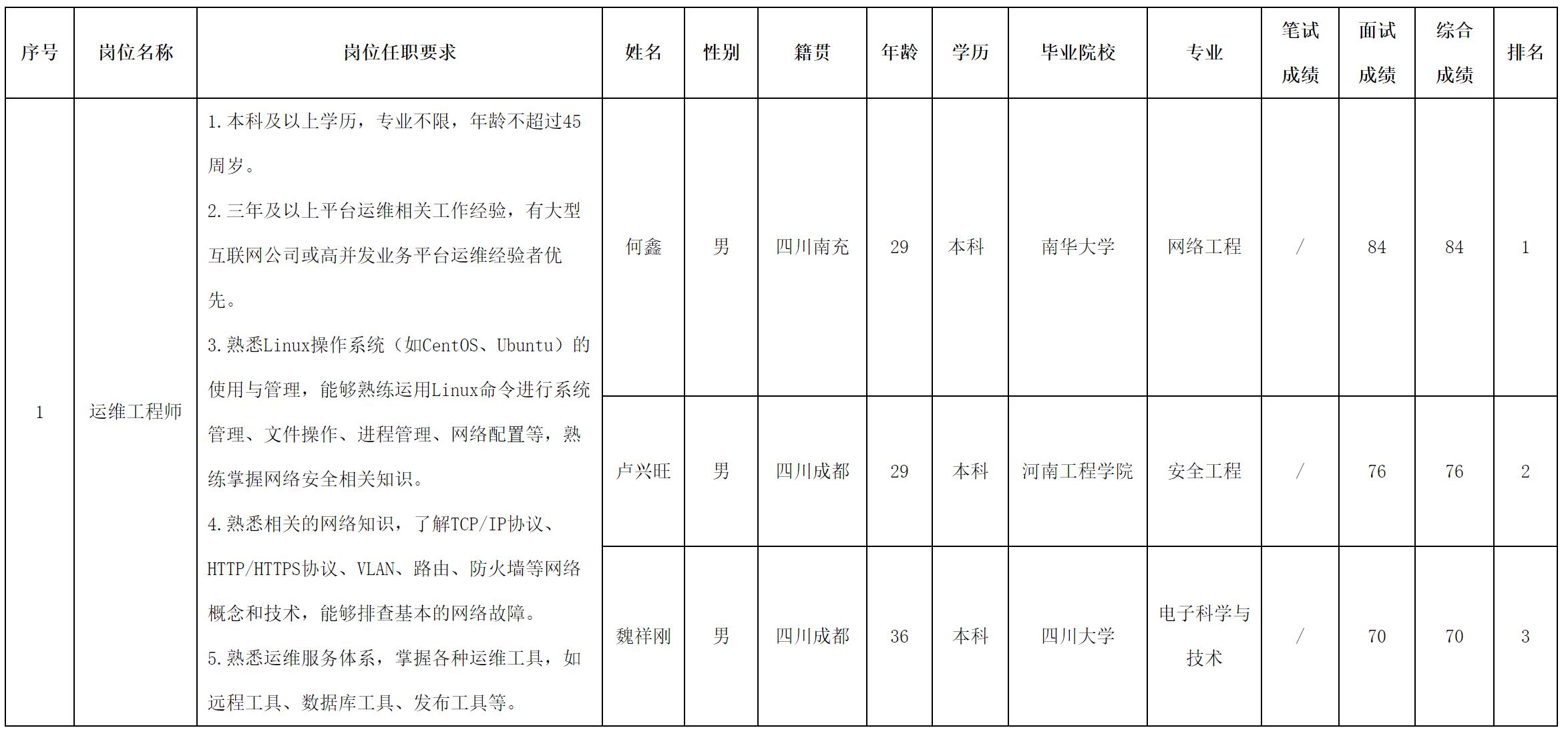 根據(jù)四川長虹新網(wǎng)科技有限責(zé)任公司發(fā)布的招聘公告及招聘相關(guān)規(guī)定,現(xiàn)將測試成績予以公示。