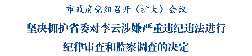 會(huì)議指出,省紀(jì)委監(jiān)委對(duì)李云涉嫌嚴(yán)重違紀(jì)違法進(jìn)行紀(jì)律審查和監(jiān)察調(diào)查,充分彰顯了省委持之以恒推進(jìn)全面從嚴(yán)治黨的堅(jiān)定決心,充分體現(xiàn)了保持反腐敗高壓態(tài)勢(shì)不動(dòng)搖的鮮明態(tài)度,再次釋放了反腐敗無(wú)禁區(qū)、全覆蓋、零容忍的強(qiáng)烈信號(hào)。市政府黨組堅(jiān)決擁護(hù)省委決定、堅(jiān)決擁護(hù)省紀(jì)委監(jiān)委決定,將切實(shí)把思想和行動(dòng)統(tǒng)一到黨中央關(guān)于全面從嚴(yán)治黨的部署要求上來(lái),統(tǒng)一到省委和省紀(jì)委監(jiān)委決定精神上來(lái),堅(jiān)決扛牢推進(jìn)全面從嚴(yán)治黨、深化黨風(fēng)廉政建設(shè)的責(zé)任擔(dān)當(dāng),以永遠(yuǎn)在路上的政治自覺(jué)全面加強(qiáng)自身建設(shè),以實(shí)際行動(dòng)堅(jiān)定擁護(hù)“兩個(gè)確立”、堅(jiān)決做到“兩個(gè)維護(hù)”。