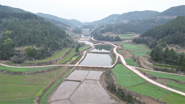 鹽亭縣黃甸鎮(zhèn)利和村連片的魚塘。 記者 彭紫薇 攝