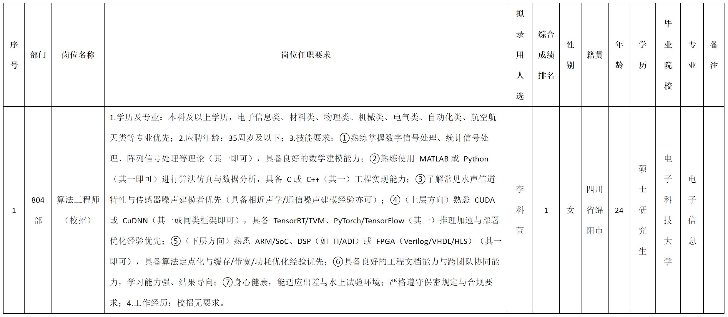 根據(jù)四川九洲電器集團有限責(zé)任公司發(fā)布的招聘公告及招聘相關(guān)規(guī)定,經(jīng)測試、考察、體檢等程序,擬錄用李科萱同志到四川九洲電器集團有限責(zé)任公司工作,現(xiàn)予以公示,具體情況如下: