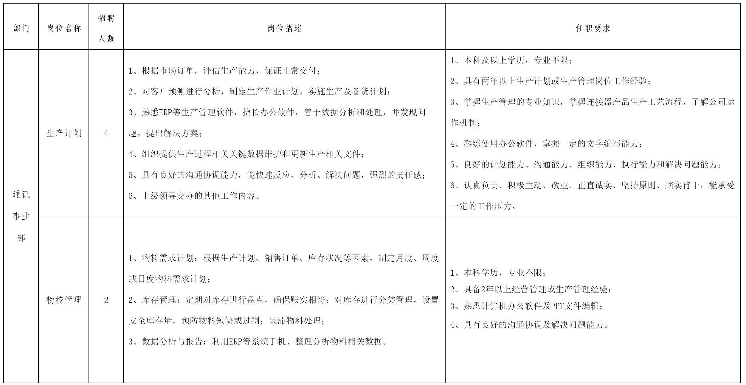 現(xiàn)因公司經(jīng)營發(fā)展需要,現(xiàn)面向長虹集團內(nèi)部、外部誠聘生產(chǎn)計劃等崗位人員,具體崗位招聘信息公告如下: