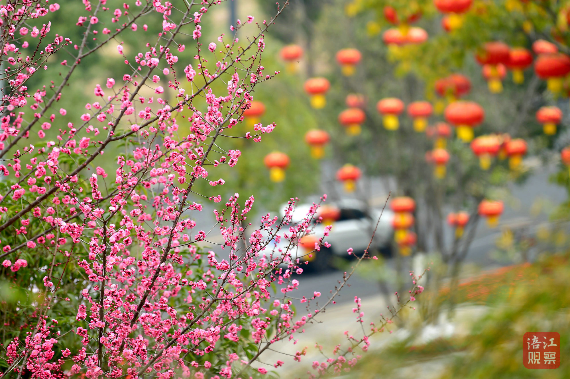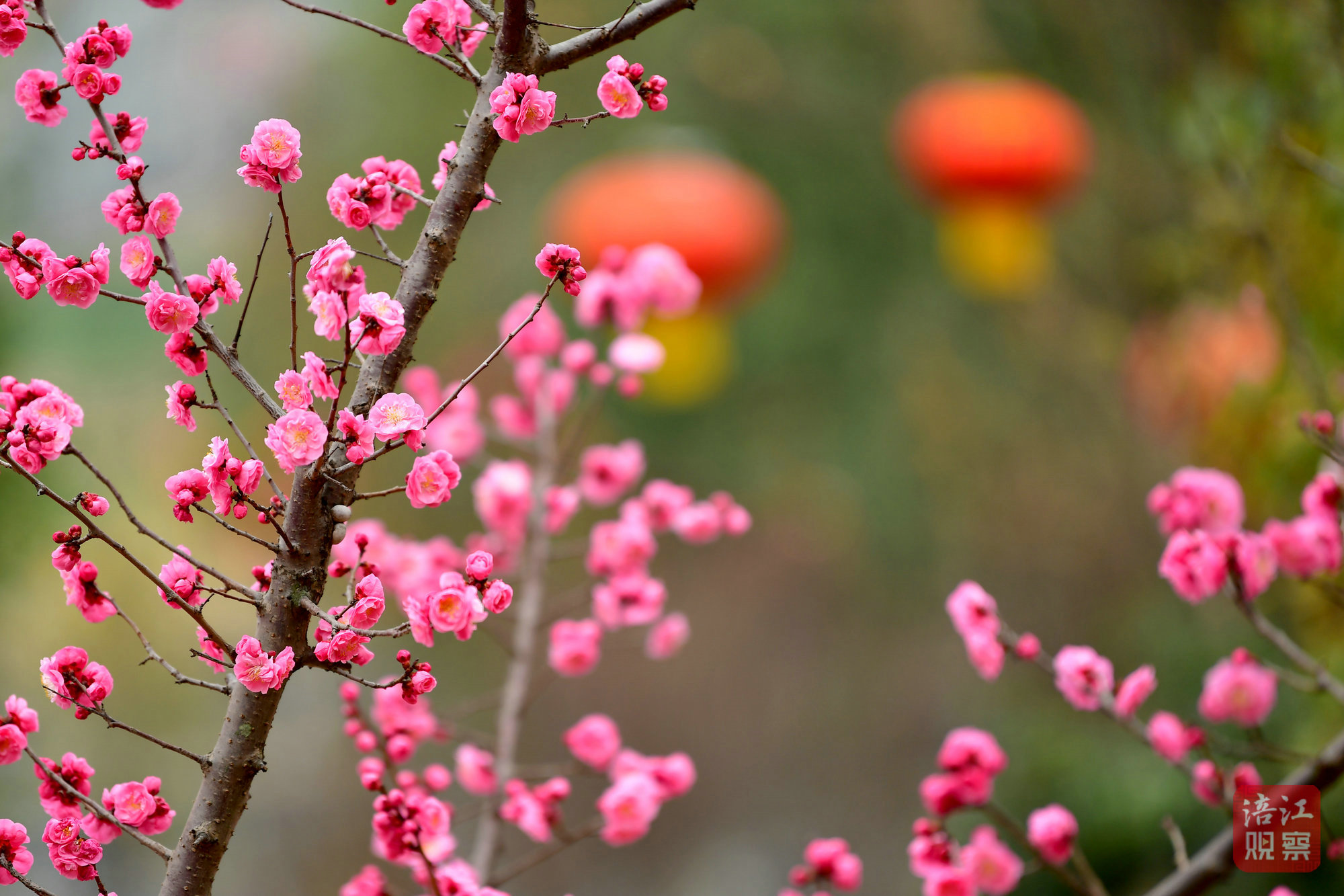 紅燈籠與梅香交織