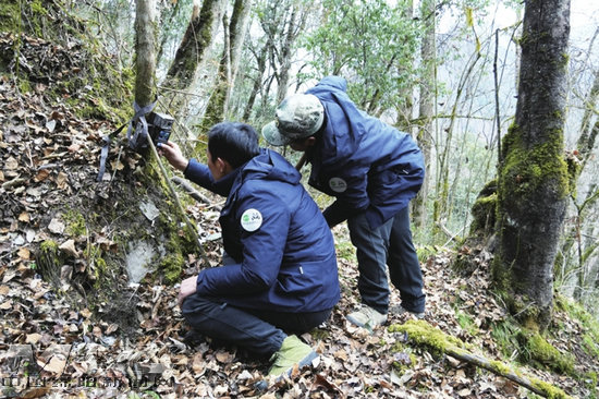 “最近高海拔雪大,動物都下山找吃的來了。” 行至海拔2100米處,59歲的巡護(hù)員格若塔瞥見一團(tuán)新鮮的黑糞,當(dāng)即認(rèn)出是林麝的。