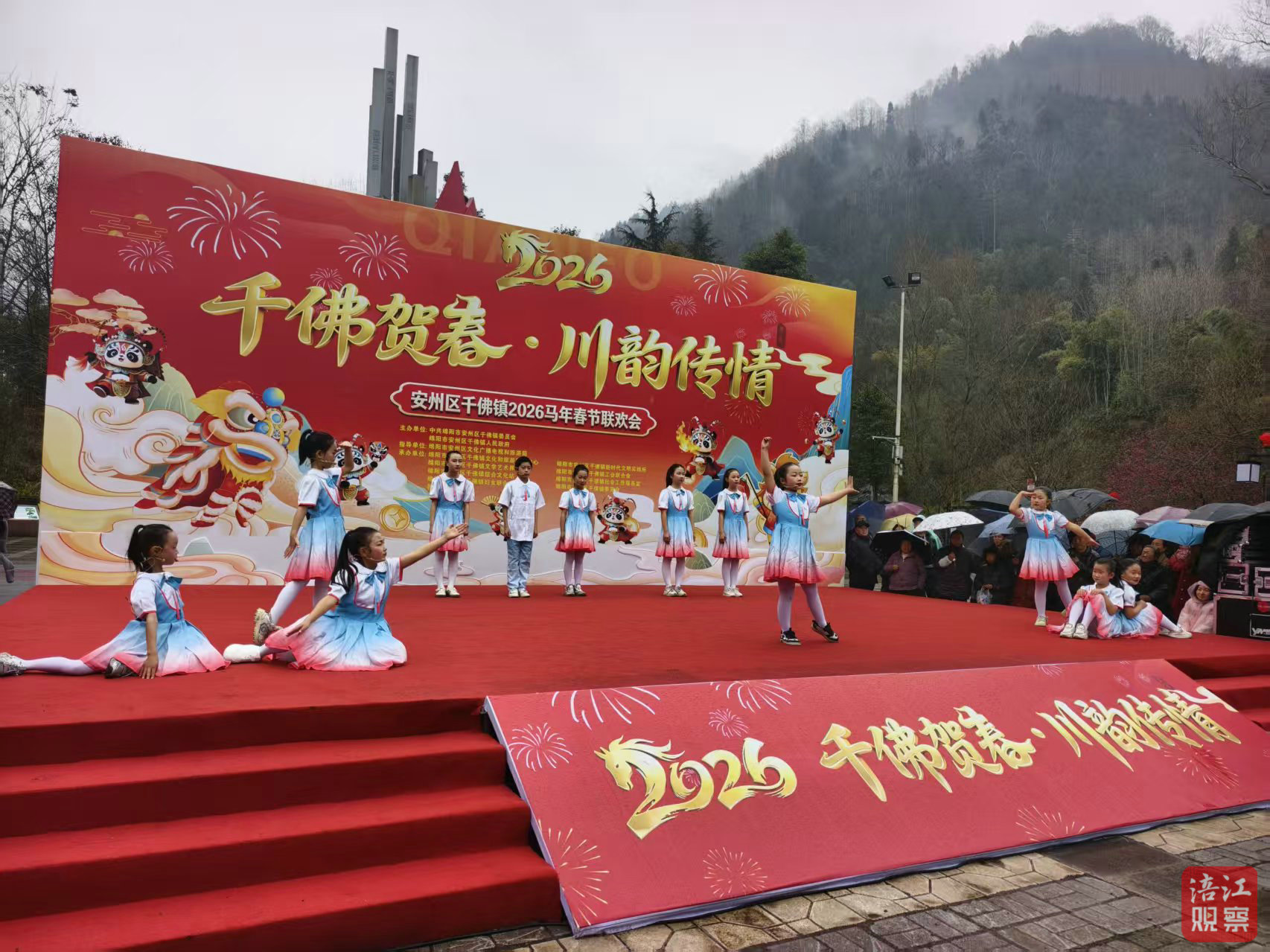 沒有明星大腕,臺(tái)上全是熟面孔:小學(xué)合唱團(tuán)、村上的廣場舞隊(duì)、老人們的山歌對唱……唱到“千佛山水美”時(shí),臺(tái)下觀眾齊聲相和。歌聲在雨聲和山谷間回蕩,分不清哪是臺(tái)上哪是臺(tái)下——在這新春舞臺(tái)上,每個(gè)人都是自己的主角。