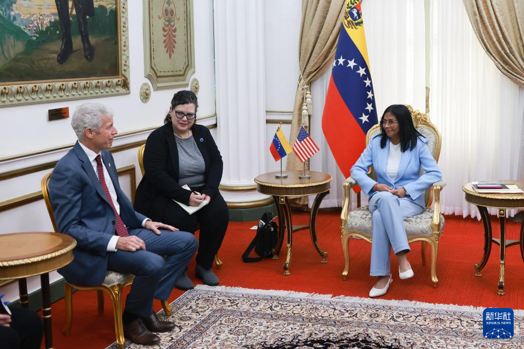 新華社加拉加斯2月11日電(記者田睿)委內(nèi)瑞拉代總統(tǒng)德爾西·羅德里格斯11日在加拉加斯總統(tǒng)府會見美國能源部長克里斯·賴特。
