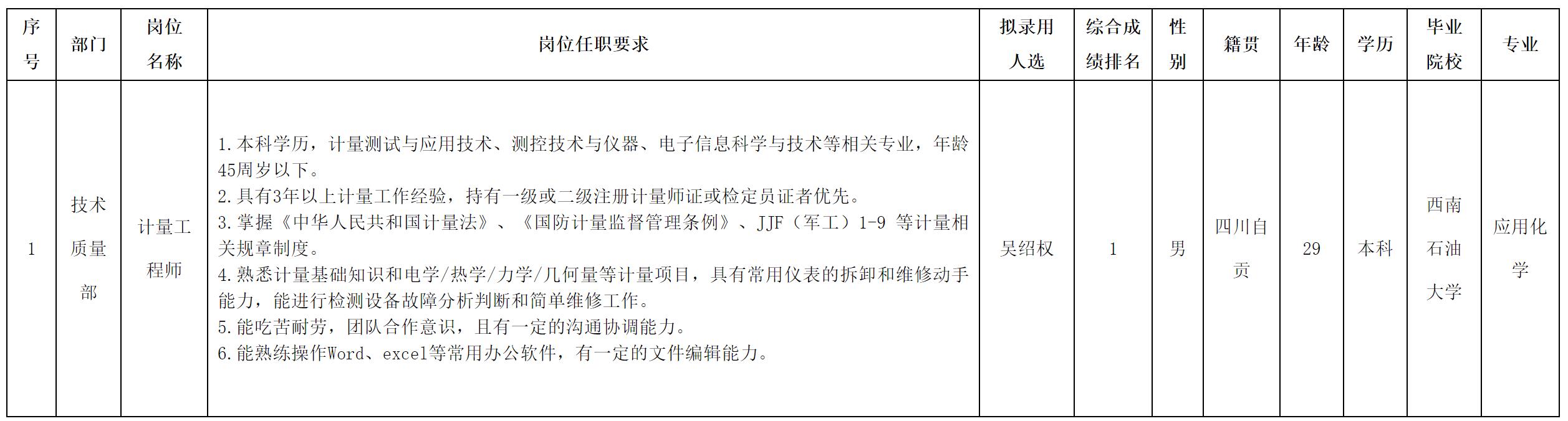 根據(jù)四川華豐科技股份有限公司發(fā)布的招聘公告及招聘相關(guān)規(guī)定,經(jīng)測(cè)試等程序,擬錄用吳紹權(quán)同志到四川華豐科技股份有限公司工作,現(xiàn)予以公示,具體情況如下:
