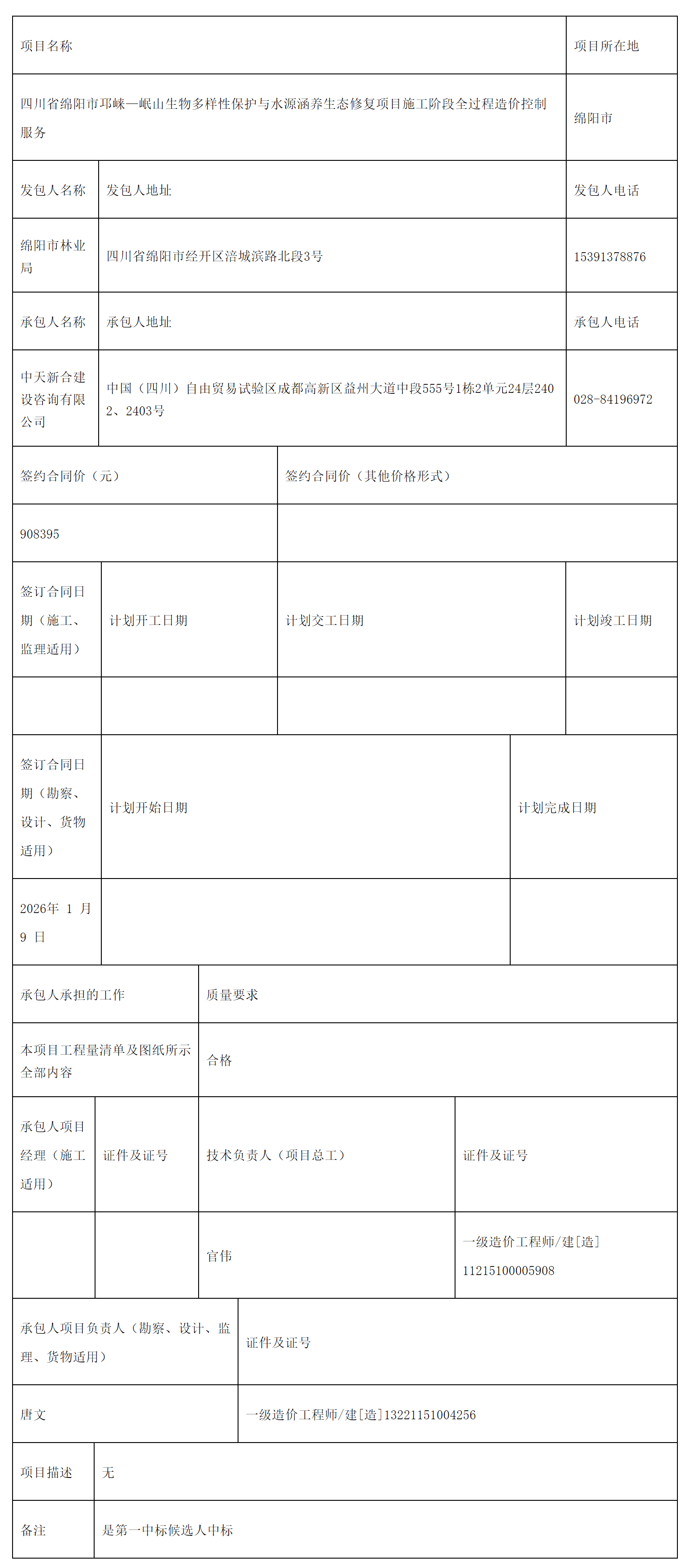 注:1.項目名稱要詳細填寫,有標段(包)的,應詳細到標段(包)。