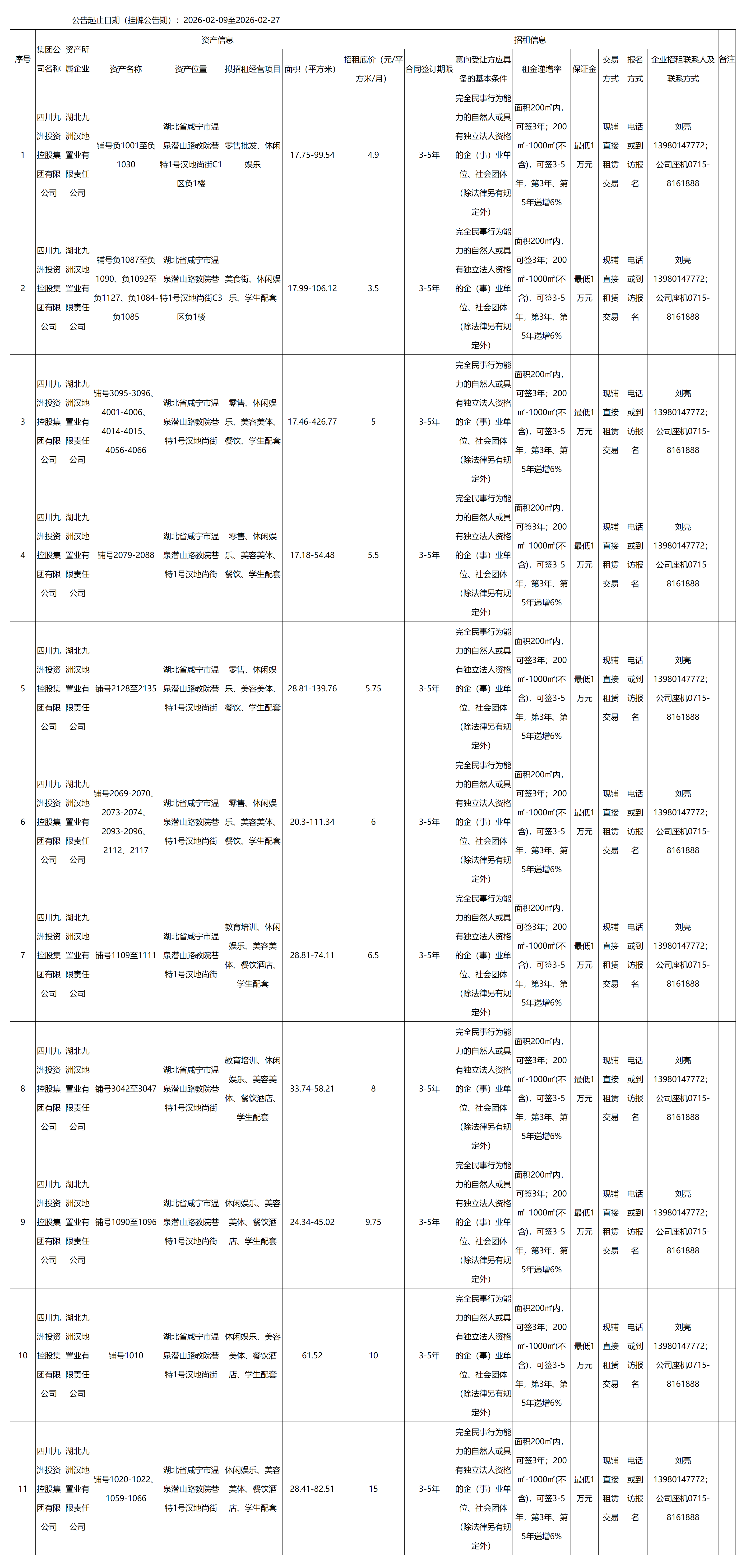 四川九洲千城商業(yè)管理有限公司湖北項(xiàng)目部漢地尚街商鋪出租公告