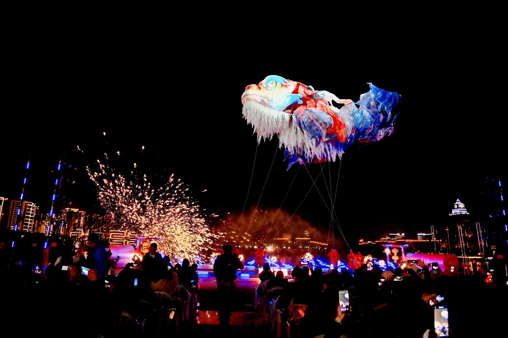 大年初二晚,“青睞綿陽(yáng)·有福之城”2026年金西湖新春系列活動(dòng)熱鬧非凡。水幕激光秀將現(xiàn)代科技與藝術(shù)完美融合,在湖面上勾勒出華美畫卷;千架無(wú)人機(jī)組成的燈光秀,在夜空中書寫出對(duì)未來(lái)的美好祝愿。湖畔的文藝晚會(huì)和“妙會(huì)”集市,讓市民游客在歌舞與美食中,開(kāi)啟一場(chǎng)非遺韻味的溫情旅程。