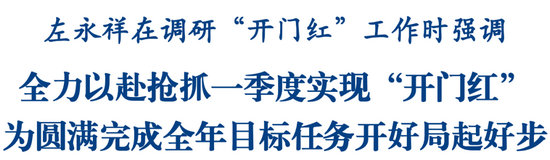 調(diào)研過程中,左永祥強(qiáng)調(diào),今年是“十五五”開局之年,也是發(fā)揮中國科技城優(yōu)勢加快建成省域經(jīng)濟(jì)副中心“三年行動(dòng)”的攻堅(jiān)之年。各地各部門要堅(jiān)持以經(jīng)濟(jì)建設(shè)為中心、以推動(dòng)高質(zhì)量發(fā)展為主題,以“起步就起勢、提速更提質(zhì)”的拼勁,朝“攻堅(jiān)”聚焦、向“攻堅(jiān)”發(fā)力,全力抓好各項(xiàng)重點(diǎn)工作,努力實(shí)現(xiàn)“十五五”良好開局。要強(qiáng)化項(xiàng)目支撐,樹牢“項(xiàng)目為要、項(xiàng)目為王”理念,結(jié)合“十五五”規(guī)劃編制,做實(shí)項(xiàng)目前期工作,堅(jiān)持全生命周期管理,加強(qiáng)要素保障和跟蹤調(diào)度,加力加勁推動(dòng)重點(diǎn)產(chǎn)業(yè)項(xiàng)目落地見效,以高質(zhì)量項(xiàng)目建設(shè)為高質(zhì)量發(fā)展增動(dòng)力、添后勁。要優(yōu)化服務(wù)保障,精準(zhǔn)對接企業(yè)發(fā)展需求,持續(xù)落實(shí)好“雙提雙解”常態(tài)化工作機(jī)制,想方設(shè)法為企業(yè)紓困解難,推動(dòng)各項(xiàng)惠企政策落地落實(shí),促進(jìn)全市經(jīng)濟(jì)持續(xù)、健康發(fā)展。要推動(dòng)消費(fèi)擴(kuò)容提質(zhì),深入實(shí)施“文旅融合發(fā)展五大工程”,深化“青睞綿陽”文旅品牌體系建設(shè),創(chuàng)新多元化消費(fèi)場景,辦好系列促消費(fèi)活動(dòng),加強(qiáng)文旅宣推,切實(shí)增強(qiáng)消費(fèi)對經(jīng)濟(jì)增長的拉動(dòng)作用。要認(rèn)真落實(shí)省、市“新春第一會(huì)”部署要求,牢固樹立和踐行正確政績觀,清單化、節(jié)點(diǎn)化、責(zé)任化推進(jìn)經(jīng)濟(jì)社會(huì)發(fā)展各項(xiàng)預(yù)期目標(biāo)和重點(diǎn)任務(wù)落地落實(shí),更好統(tǒng)籌發(fā)展和安全,扎實(shí)推動(dòng)省域經(jīng)濟(jì)副中心建設(shè)取得決定性進(jìn)展。