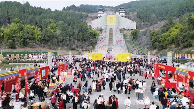 鹽亭縣華夏母親嫘祖國家紀(jì)念公園,2萬多名游客齊聚嫘祖陵,看表演、賞民俗、登高祈福。