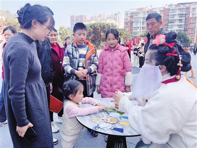 文化不再是靜態(tài)的陳列,而是鮮活的互動。2月20日在文同廣場啟動的“非遺鬧春”主會場活動,古箏悠揚中,漢服巡游隊伍衣袂翩躚,漢服舞蹈與街舞快閃輪番上演,傳統(tǒng)與現(xiàn)代交相輝映。臺下,投壺、錘丸、香囊制作、財神拓印等互動體驗點前排起長隊,主持人與觀眾即興對唱,歡聲笑語不斷,濃濃年味在沉浸式互動中彌漫開來。