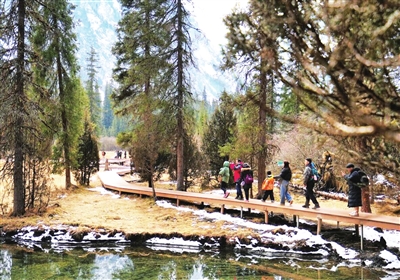 在大熊貓國家公園王朗片區(qū),銀裝素裹的原始林海吸引大量游客前來徒步、研學(xué);今年新啟用的虎牙滑雪場(chǎng),依托2400米海拔打造“云端滑雪”體驗(yàn),藏族同胞的鍋莊舞與冰雪運(yùn)動(dòng)交織出別樣年味。素有“深山故宮”美譽(yù)的報(bào)恩寺則推出“古建新玩法”,沉浸式導(dǎo)覽、國潮市集、民族歌舞展演等活動(dòng)讓游客流連忘返。