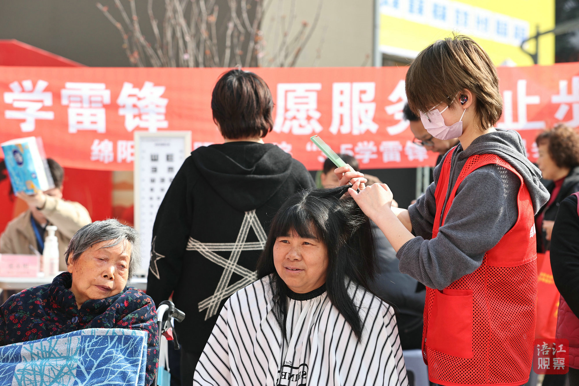在互動(dòng)體驗(yàn)與技能實(shí)操區(qū),綿陽(yáng)市蒲公英救援隊(duì)隊(duì)員母繼超正在“手把手”地教授心肺復(fù)蘇術(shù),吸引市民駐足學(xué)習(xí);志愿者余祥瑞則開(kāi)辟“流動(dòng)理發(fā)角”,為市民解決“頭”等大事,現(xiàn)場(chǎng)暖意融融。“以后會(huì)一直堅(jiān)持參與志愿服務(wù)活動(dòng),能用自己的手藝去溫暖別人。同時(shí)也希望通過(guò)活動(dòng),讓我們記住雷鋒的這種精神,舍己利他。”余祥瑞說(shuō)。