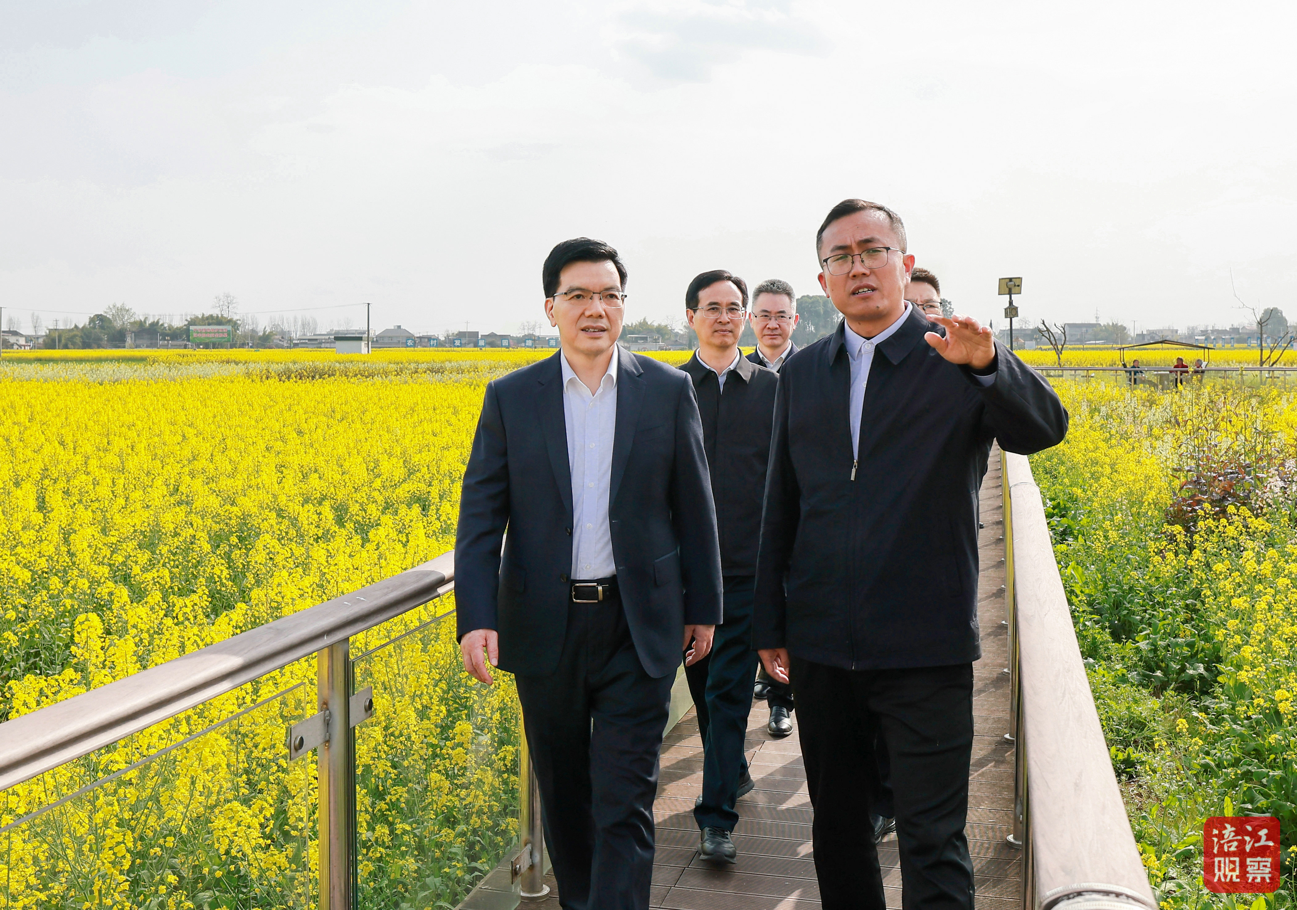 在安州區(qū)優(yōu)質(zhì)糧油現(xiàn)代農(nóng)業(yè)園區(qū),左永祥走進田間地頭,仔細察看油菜、小麥長勢以及土壤墑情,詢問了解種植效益、農(nóng)產(chǎn)品加工、農(nóng)文旅融合發(fā)展等情況。他強調(diào),要持續(xù)推進現(xiàn)代農(nóng)業(yè)園區(qū)建設(shè),集成推廣良田良種良機良法,加強農(nóng)村資產(chǎn)資源盤活利用,確保集體資產(chǎn)保值增值和農(nóng)民受益;深入挖掘鄉(xiāng)村優(yōu)勢資源,大力培育鄉(xiāng)村新產(chǎn)業(yè)新業(yè)態(tài),推動農(nóng)文旅深度融合發(fā)展,不斷提升農(nóng)業(yè)產(chǎn)業(yè)附加值和綜合效益。