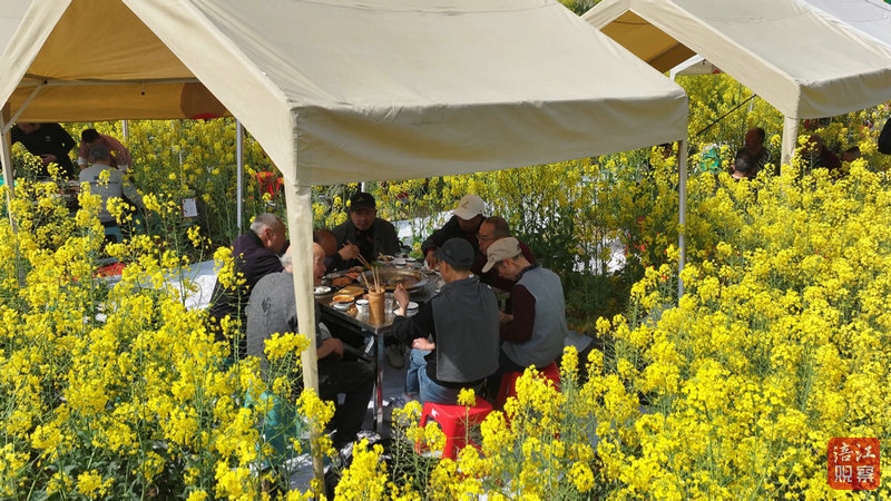 最受歡迎的莫過于“花田火鍋”——十幾個獨立小隔間點綴在花海中,游客們圍爐而坐,窗外是連綿的金黃,窗內(nèi)是沸騰的紅湯。“提前一周就訂到位子了!”火鍋店老板尹艷穿梭在桌椅間,臉上掛著藏不住的笑容,“今天中午已經(jīng)翻了三次臺,預計整個花期能接待近萬桌。”上海游客鄧海霞辣得直吸氣卻停不下筷子:“這味道!這環(huán)境!值了!”