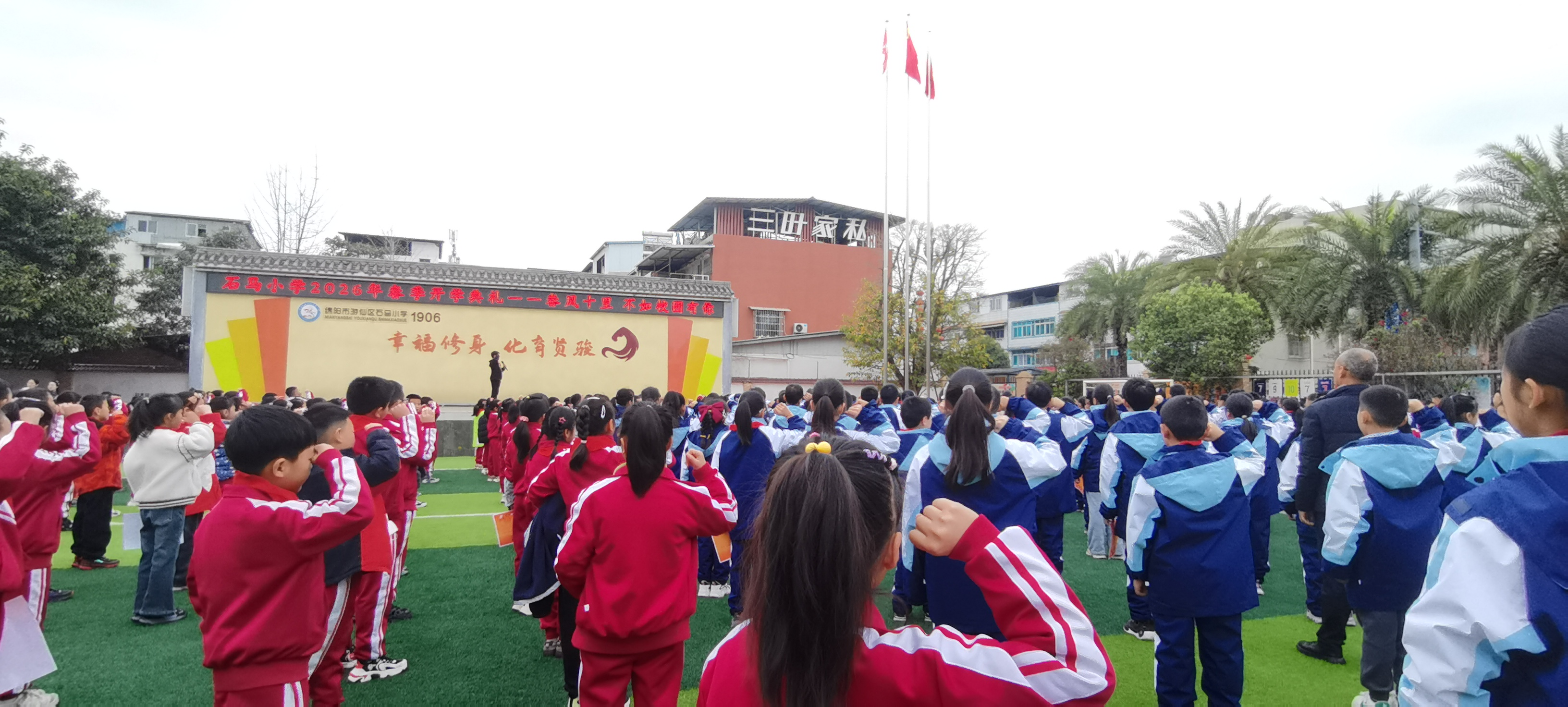 3月2日下午,游仙區(qū)石馬小學(xué)在操場(chǎng)隆重舉行了以“春風(fēng)十里 不如校園有你”為主題的2026年春季學(xué)期開學(xué)典禮。全體行政人員、教師及學(xué)生身著整齊的秋季校服,佩戴鮮艷的紅領(lǐng)巾,齊聚一堂,共同迎接新學(xué)期的到來。
