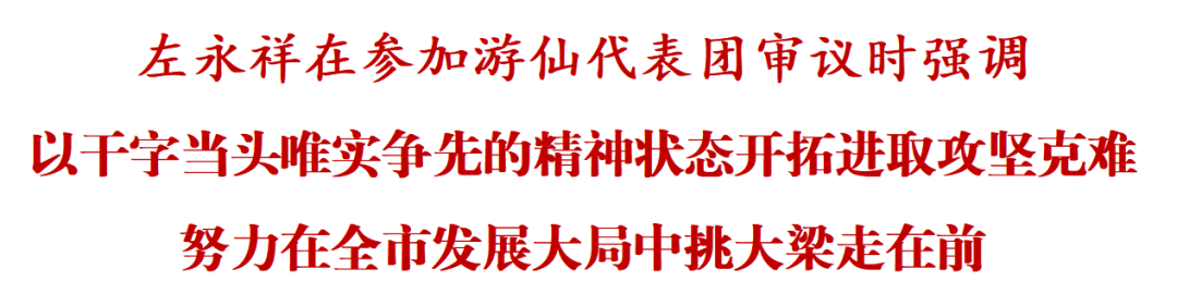 綿陽新聞網(wǎng)訊 3月7日,省委常委、市委書記左永祥參加游仙代表團(tuán)會(huì)議,與代表們一起審議政府工作報(bào)告、審查“十五五”規(guī)劃綱要草案等。他強(qiáng)調(diào),要深入學(xué)習(xí)貫徹習(xí)近平總書記對四川對綿陽工作系列重要指示精神,全面落實(shí)黨中央大政方針和省委、市委部署要求,牢牢把握高質(zhì)量發(fā)展這個(gè)首要任務(wù),以干字當(dāng)頭、唯實(shí)爭先的精神狀態(tài)開拓進(jìn)取、攻堅(jiān)克難,努力在全市發(fā)展大局中挑大梁、走在前。
