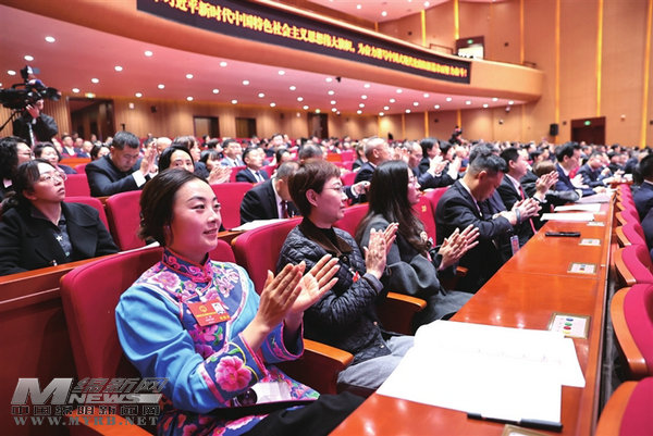 3月8日,綿陽市西山文化中心,人大代表認真聽取市人大常委會工作報告。記者 陳冬冬 攝